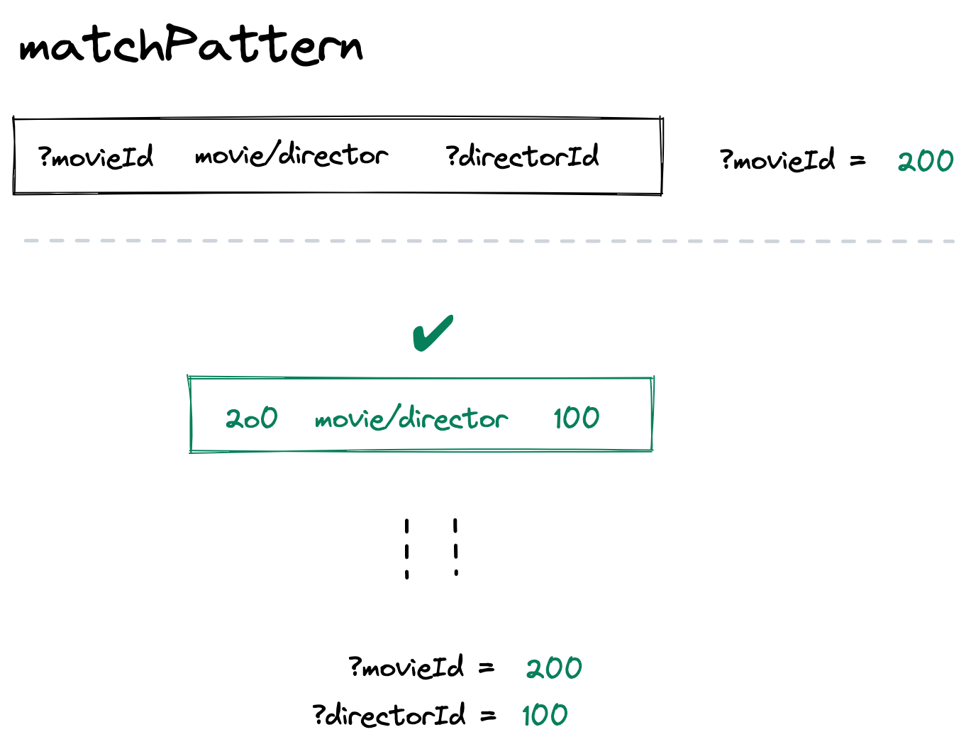 We bind ?movieId to 200. Now we start searching for the second pattern: